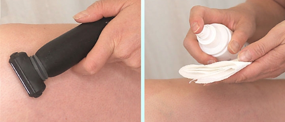 テープを貼る部位周辺の皮膚の油分や水分をふき取り、清潔にします。