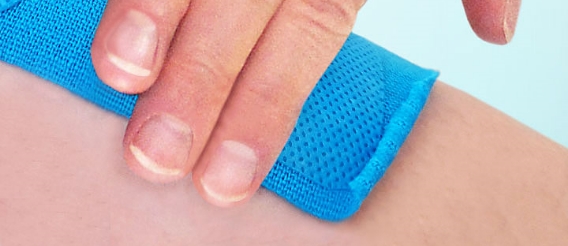 モビライゼーションタブには非伸縮性の素材を使用しているため、グリップ感があり、正確な処置が可能です。赤ちゃんのおむつに使用されているポリプロピレン100%の繊維を使用しており、ソフトで肌触りが良いのが特長です。